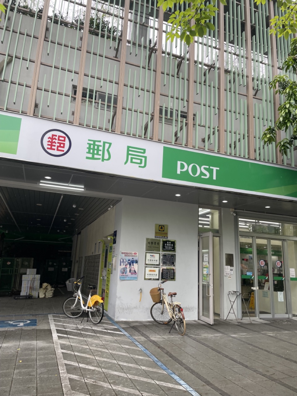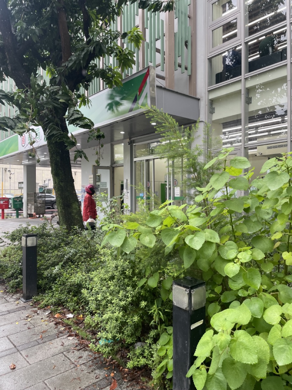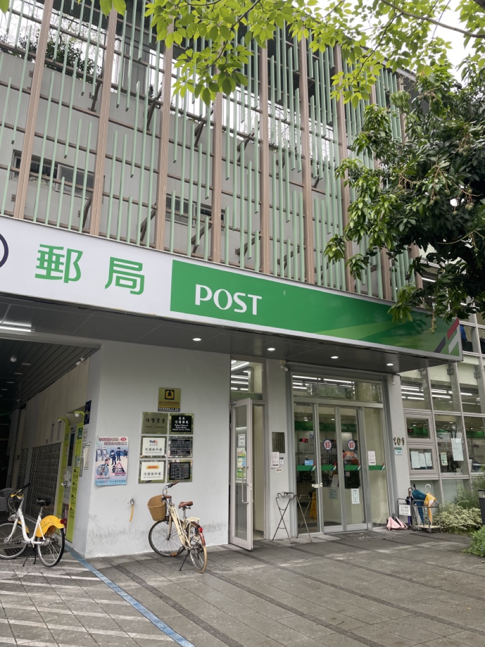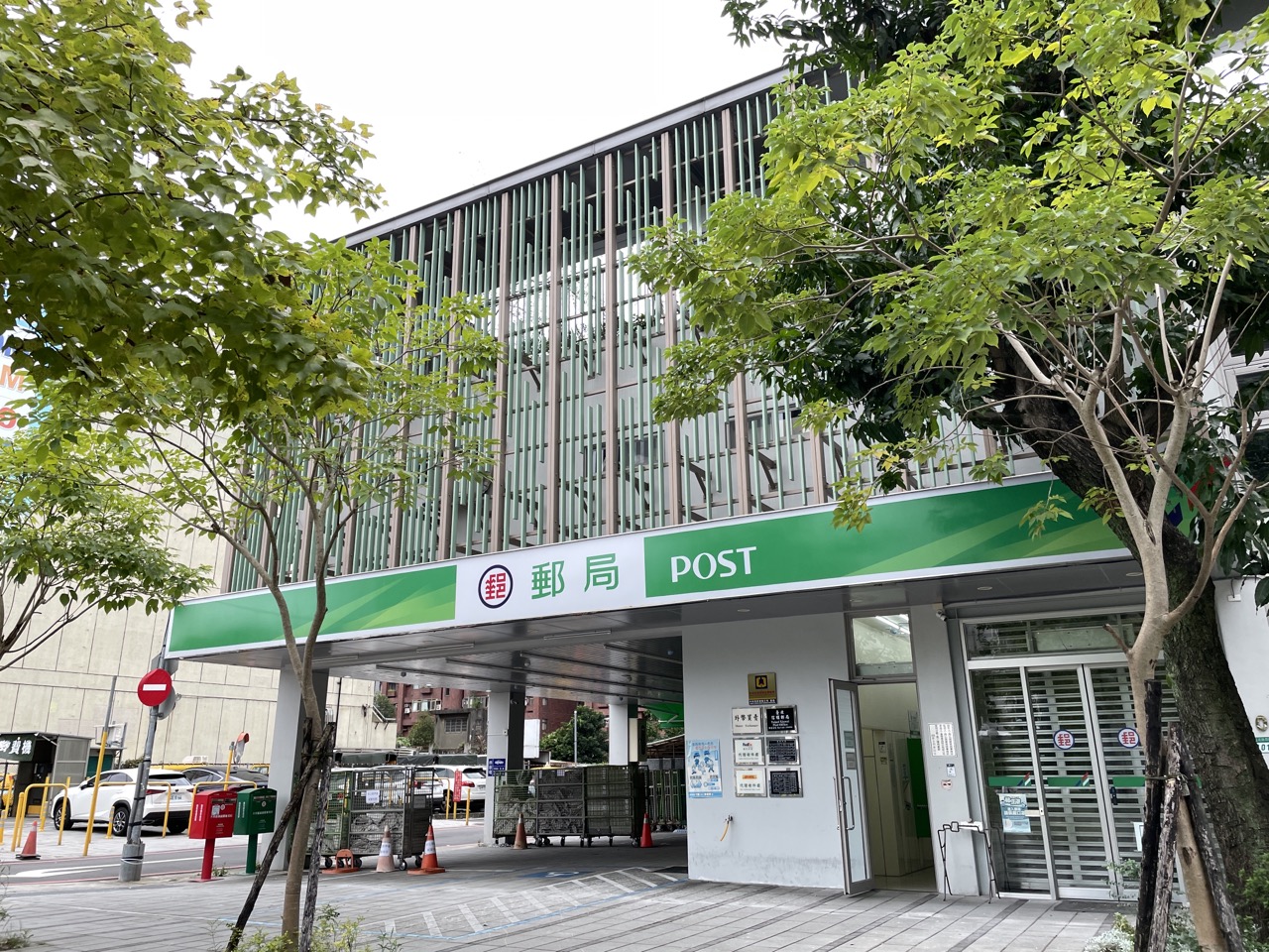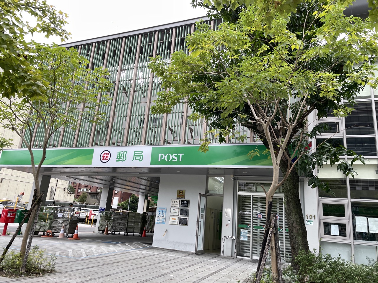 Una oficina de correos rodeada de abundante vegetación ofrece un ambiente refrescante y ecológico.